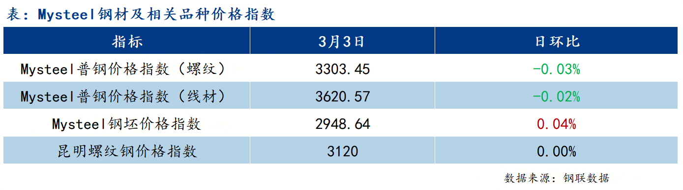3、截至3月3日收盘,螺纹钢2605收3074元/吨,涨0.07%;热卷2605收3219元/吨,跌0.03%;铁矿石2605收753.5元/吨,涨0.67%。