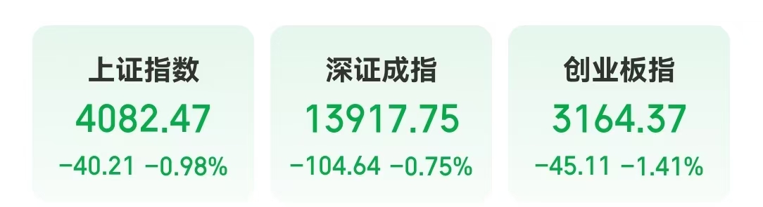 今天,A股调整。截至收盘,上证指数下跌0.98%,深证成指下跌0.75%,创业板指下跌1.41%。电力基建产业链反弹,电网设备、特高压、电力物联网等板块上涨。