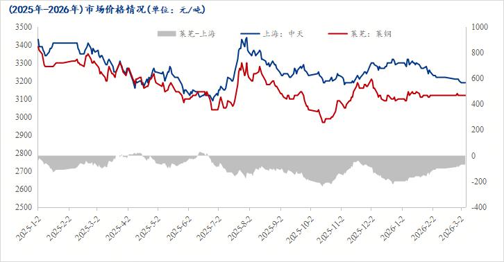 本周山东建筑钢材市场价格暂稳盘整。根据Mysteel数据,截至3月6日,莱芜地区建筑钢材价格为3120元/吨,较上周五不变;月环比也持稳运行;同比去年跌了130元/吨,跌幅4%。对比上海市场来看,目前山东莱芜市场价格低于上海市场价格70元/吨,山东市场建筑钢材价格相较于华东地区价格稍显偏低。