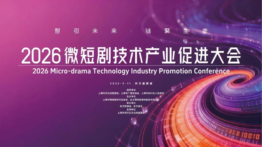东方承韵,智媒载光。3月11日,以“智引未来.链聚生态”为主题的2026微短剧技术产业促进大会在上海闵行东方智媒城.海上会客厅盛大举行。本次大会由上海市文化和旅游局、上海市广播电视局、上海市闵行区人民政府指导,上海市闵行区文化和旅游局支持,上海市网络视听行业协会、东方明珠新媒体股份有限公司联合主办,东方智媒城、东方娱乐承办,汇聚政、产、学、研、用各界力量,共话人工智能与微短剧深度融合,共筑全链条产业生态,全力打造上海微短剧产业发展的闵行样板。