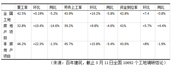 整体来看,元宵节后下游复工加速,但低于去年农历同期。一方面,区域分化,南方市场因天气原因恢复较快,北方市场受天气及环保限产等因素整体开工延后;另一方面,区县项目垫资普遍,仍存在一定化债压力,民企回款垫资等问题限制了中小项目开工建设。