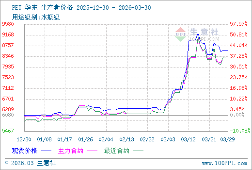 3月30日PET期货主力合约2605收盘价为8326元/吨。