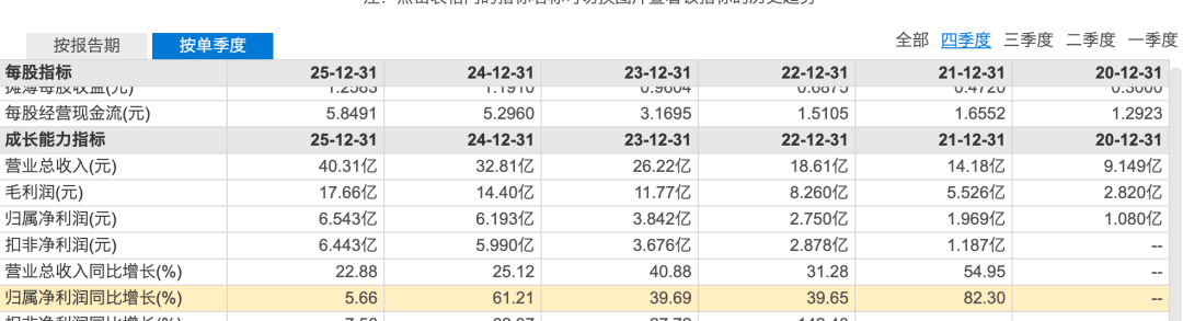 去年第四季度公司营收40.31亿元,同比增长22.88%;归母净利润6.54亿元,同比增长仅5.66%,净利润增速远不及营收增速,拖累整体利润率;对比近几年同期业绩来看,这是其利润增速首次降低至个位数。