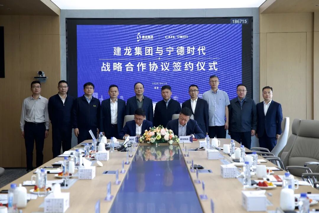 4月10日,宁德时代与建龙集团在福建宁德签署战略合作协议。双方将围绕钢铁产业新能源化、绿色智慧矿山、物流电动化、零碳园区、供应链协同等领域深度合作,共同打造钢铁行业绿色低碳转型标杆。建龙集团副总裁、抚顺新钢总经理、建龙西钢总经理吴疆与宁德时代党委第一书记、副总裁孟祥峰代表双方签署协议,建龙集团董事长、总裁张志祥与宁德时代董事长兼CEO曾毓群共同出席并见证签约。
