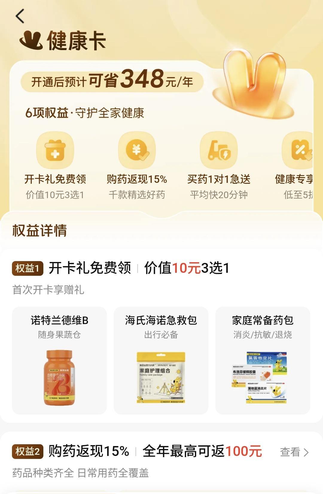 美团医药健康正式发布“健康卡”付费会员服务 图源:美团APP