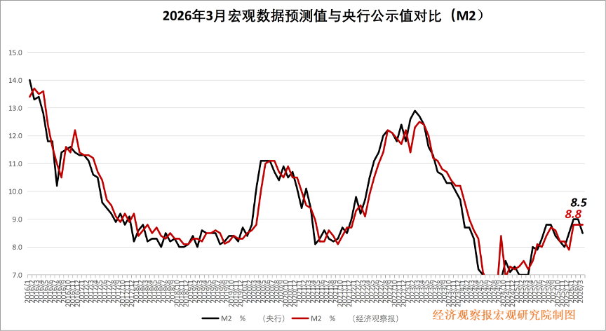 麦高证券宏观首席研究员刘娟秀点评:3月M2同比增长8.5%,虽较前值回落0.5个百分点,但连续多月维持在8%以上的合理区间,流动性充裕的格局未变。M1同比增长5.1%,较前值回落0.8个百分点,剪刀差扩大至3.4%,反映资金活性程度有所减弱。M1未能持续加快回升,也意味着经济内生动力的修复仍处于渐进过程,后续能否形成趋势性回暖,关键取决于居民消费意愿回升、房地产市场企稳以及企业盈利预期改善,进而推动活期资金活跃度提升,真正形成“货币宽松-信用扩张-经济回暖”的正向循环。