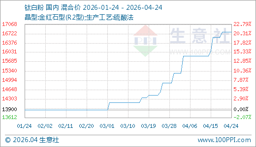 04月24日钛白粉16780.00元/吨 10天上涨5.53%