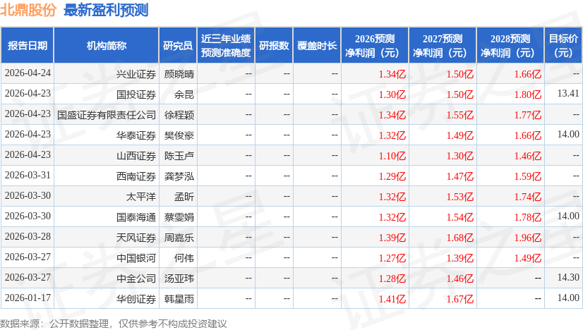 以下是详细的盈利预测信息: