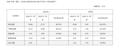 招商轮船油轮船队在一季度实现经常性利润同比大幅增长超过四倍,单季度经营利润继2025年四季度后再创历史最佳。
