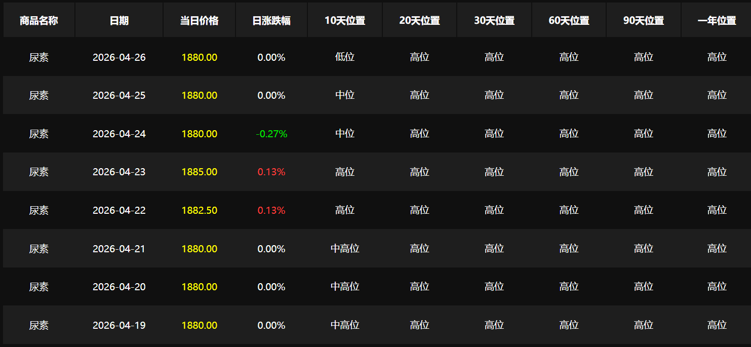 商品行情分析系统,截止4月27日,国内中小颗粒尿素市场参考均价为1880元/吨,较4月1日参考均价1865元/吨,国内尿素市场价格上涨幅度为0.80%。