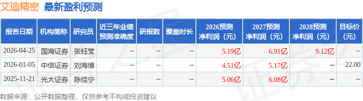最新盈利预测明细如下: