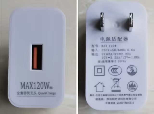 这些充电头上印有诸如“120W”字样,消费者在选购时理所当然认为是支持120W充电功率,便下单购买。