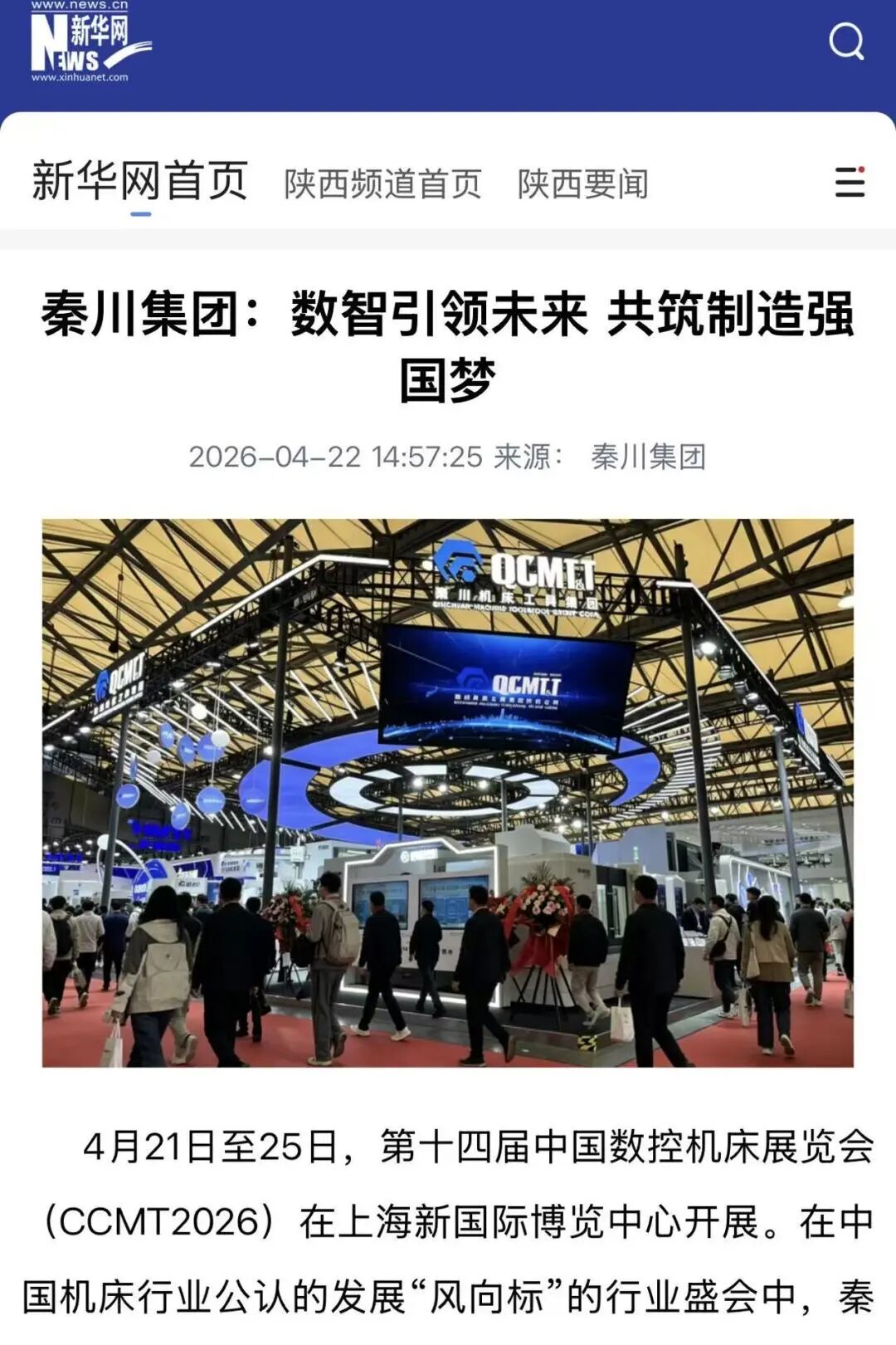 展会期间,秦川集团备受主流媒体、行业平台及视频账号广泛关注,新华网、中国工业报、中国经济网、东方财经等数十家主流媒体先后报道了展位盛况。