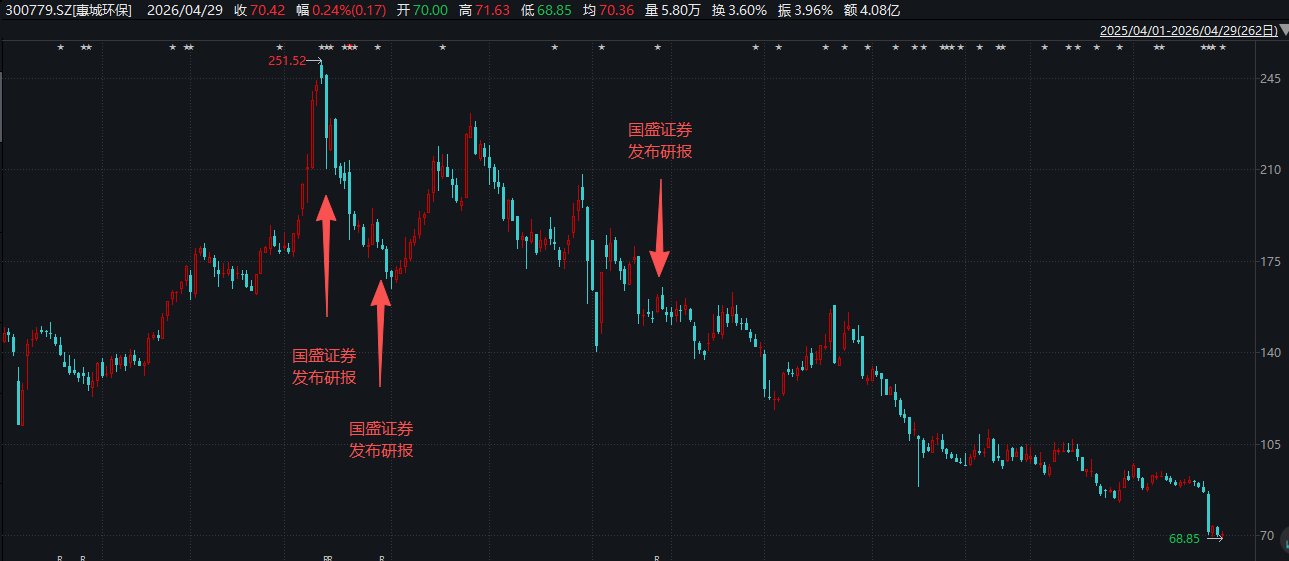 分析发现,在惠城环保股价处于高位、风险已现的关键节点,国盛证券等机构却接连发布唱多研报,释放乐观预期。