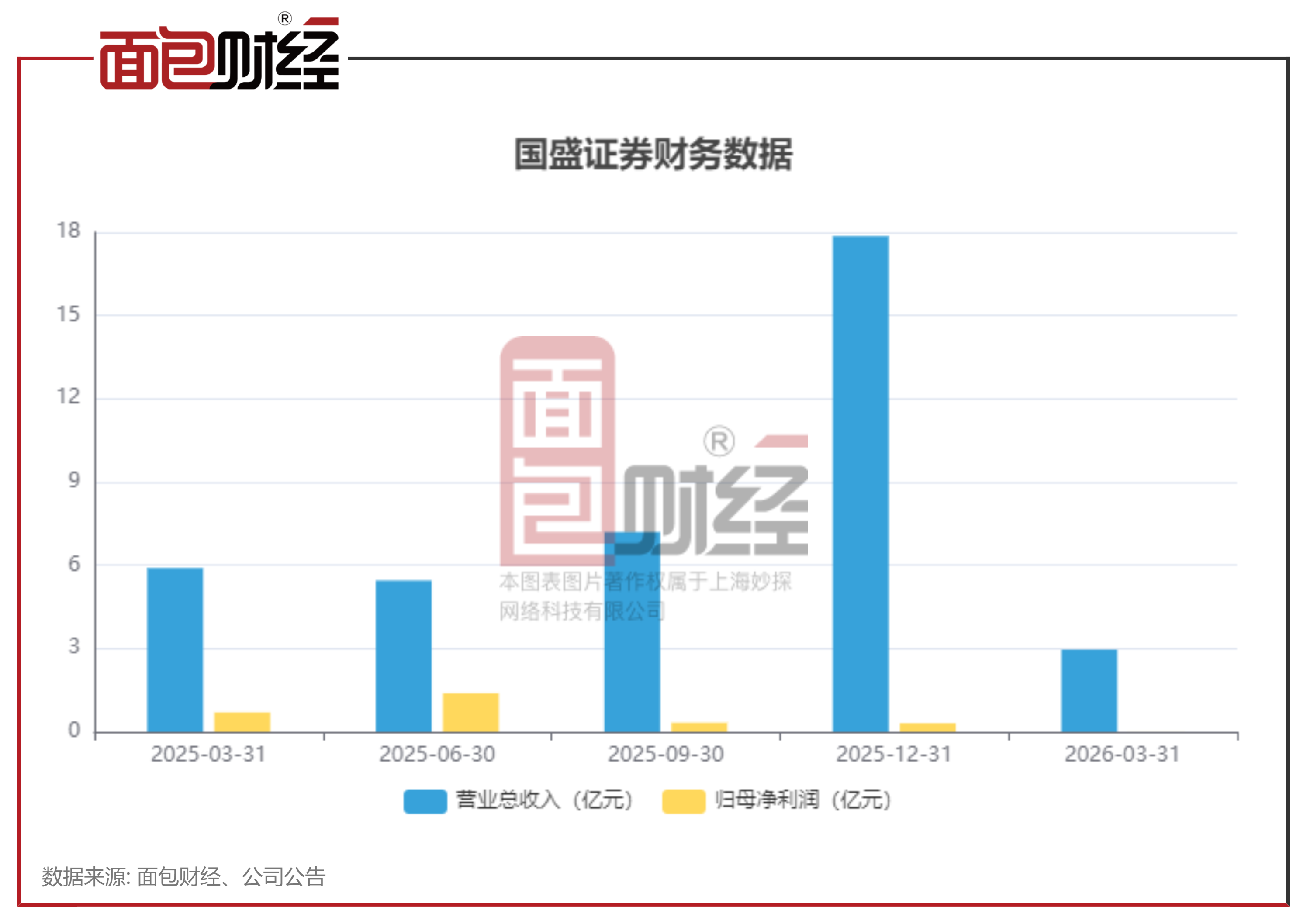 近期,国盛证券披露2026年一季度业绩快报,公司实现营业收入2.96亿元,同比下降28.82%;归母净利润仅146.87万元,同比骤降97.91%,主要因子公司持有HTT股票受市值波动影响,大幅拖累利润所致。