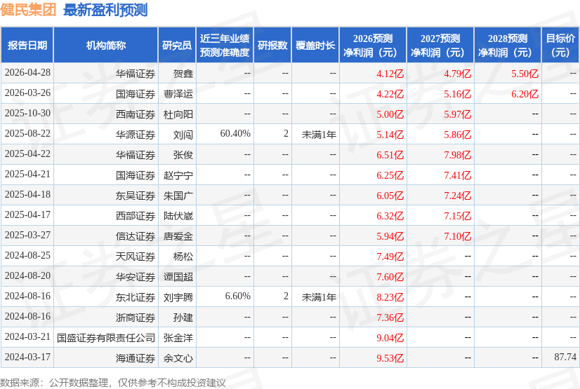 以下是详细的盈利预测信息: