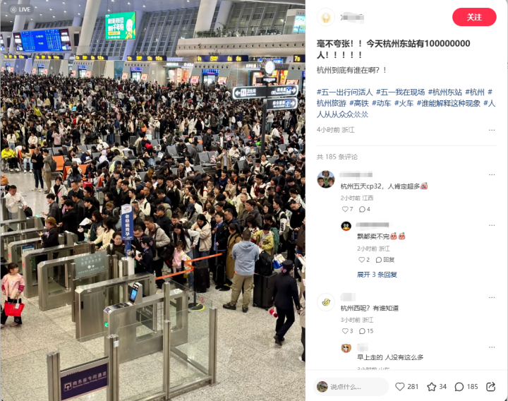 这是今天的杭州东站——一眼望去,全是人人人人。这里面,有你吗?