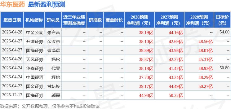 最新盈利预测明细如下: