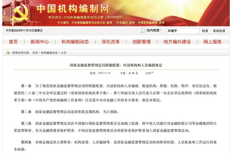 金融监管总局"三定"方案出炉:设局长1名,副局长4名!明确15大监管职责