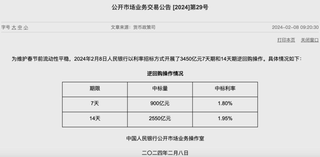 据央行消息,为维护春节前流动性平稳,央行今日进行900亿元7天期逆回购操作,中标利率为1.80%,与此前持平;进行2550亿元14天期逆回购操作,中标利率为1.95%,与此前持平。因今日有430亿元7天期逆回购到期,当日实现净投放3020亿元。