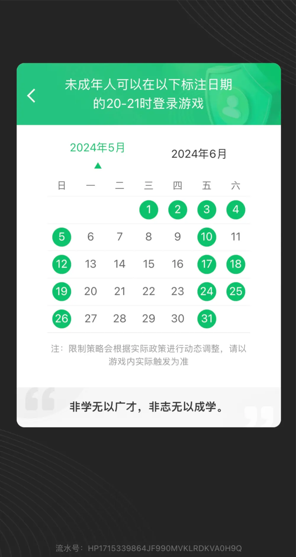 此外,如腾讯等厂商,也会在实名认证环节提前告知未成年人用户可游玩的日期。如在《王者荣耀》《元梦之星》等游戏的防沉迷模式下,会向用户展示近2个月的可玩日期安排。