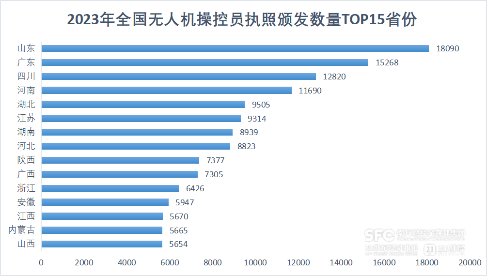 在人才培养与认证方面,陕西、四川、北京、山东及广东等省拥有较多的低空经济航空专业院校,为低空经济领域输送了大量的专业人才;另外,山东、广东、四川、河南及湖北等省的无人机操控员执照颁发数量位居全国前列。