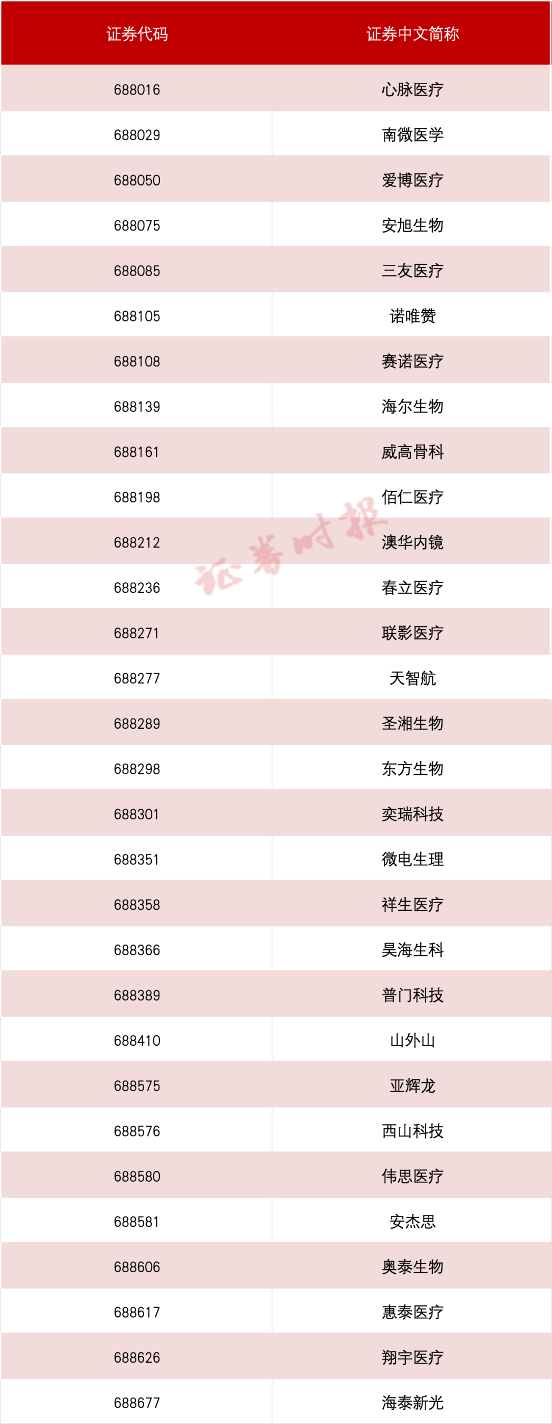 根据以上筛选条件和筛选方法,中证指数有限公司选取心脉医疗、南微医学、爱博医疗、安旭生物、三友医疗等30只股票作为该指数的首批成份股。
