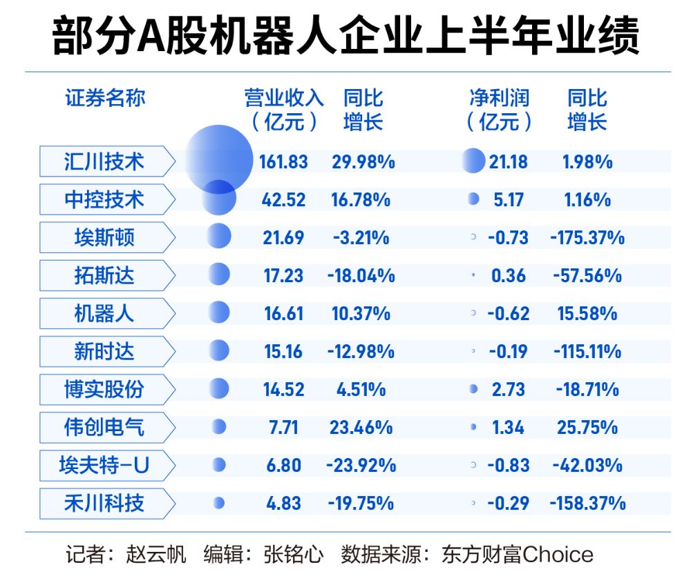 21世纪经济报道记者赵云帆 上海报道 较为有限的行业规模,星辰大海般的行业前景——机器人行业当下无疑是一个有些自相矛盾的行业。2024年上半年,机器人行业继续在激烈的行业竞争中淬炼与洗牌。而已经实现A股上市的头部机器人企业,同样展现了机器人行业冷热不均的现状。