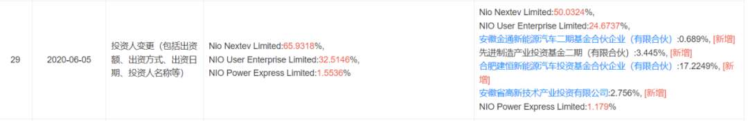 天眼查数据同时显示,上述公司分别在2020年的6月正式入股了蔚来中国。