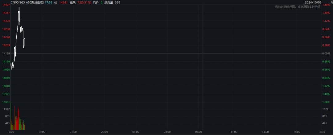 新加坡交易的富时中国A50指数期货今日也大幅回调,收跌超10%。不过,值得注意的是,在夜盘开盘后,该指数期货出现一波急拉,一度涨超1.5%,但随后又震荡回落。