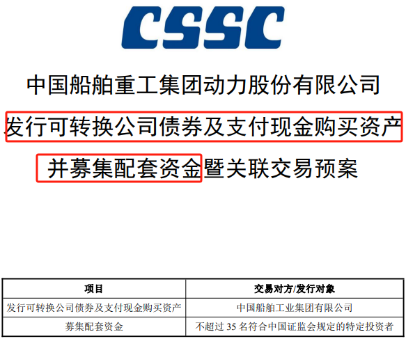 11月8日晚,停牌12天的中国动力(600482)公告了重组预案,公司拟通过发行可转换公司债券及支付现金的方式向中船工业集团购买其持有的中船柴油机16.5136%股权,并向不超过35名特定投资者发行可转换公司债券募集配套资金。