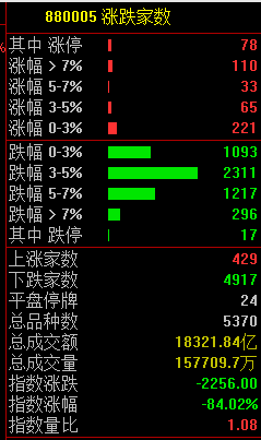 个股呈现普跌态势,全市场下跌个股近5000只。