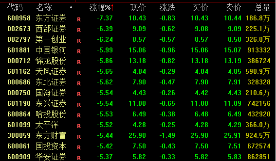 券商板块今日大幅回调,截至收盘,东方证券跌超7%,西部证券(002673)、第一创业(002797)跌超6%,东方财富(300059)、中信建投(601066)等跌逾5%,中信证券、中金公司等跌超4%。