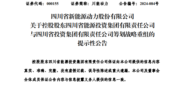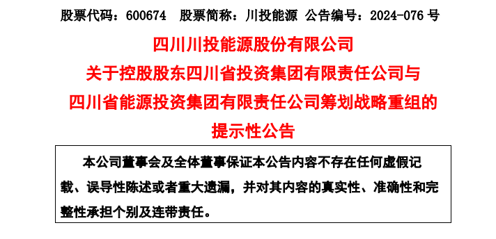 川投能源(600674)(600674)、川能动力(000155)(000155)、华海清科(688120)同步披露,公司接到通知,获悉四川省人民政府拟启动四川省投资集团(下称“川投集团”)与四川省能源投资集团(下称“四川能投”)的战略重组事宜。港股的四川能投发展(01713 .HK)以及新三板挂牌的华环电子(430009)也公告了上述消息。