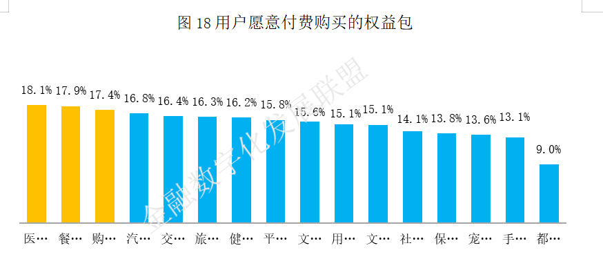 超九成用户愿意花钱购买增值权益包,医疗健康、餐饮优惠和购物优惠领域热度较高。针对消费(883434)者对不同权益可接受的心理价位,调研显示,平均价值为 89.6元,较去年提升12.6元。