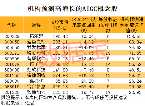 未来增长潜力方面,哪些公司值得期待?券商研报或能提供一定参考。据数据宝统计,根据5家以上机构一致预测,2024年—2026年净利润增速均有望超20%的aigc概念(886019)股有11只。
