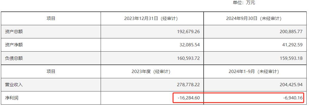本次拟置出的资产之一永通公司则处于亏损状态,2023年亏1.63亿元,2024年前三季度亏6940万元,其截至2024年三季度末的净资产仅为4.13亿元。