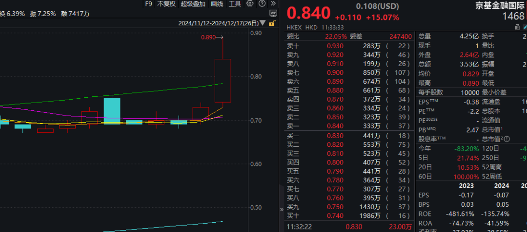 港股通标的中,京基金融国际(HK1468)领涨,盘中涨幅一度超过20%。