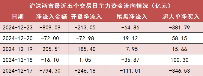 今日沪深两市主力资金开盘净流出213.05亿元,尾盘净流出64.86亿元,两市全天主力资金净流出809.09亿元。