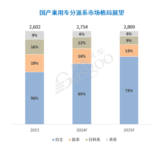 盖世汽车研究院预测,2025年自主品牌有望将市场份额推进至70%以上,同比增长约8%,是车市增长的最主要驱动力。