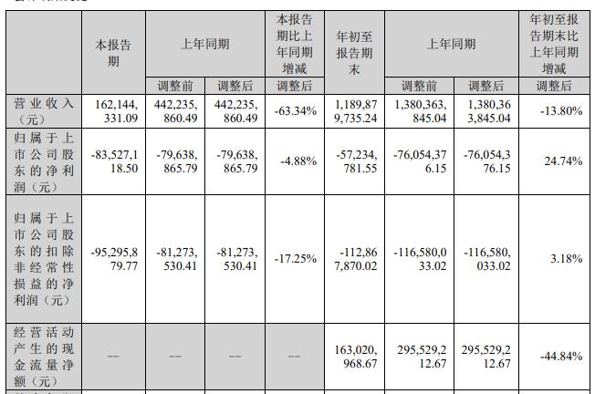 2024年前三季度,博世科的营业收入为11.90亿元,同比下降13.80%;归母净利润为-5723.48万元,同比增长24.74%;经营活动产生的现金流量净额为1.63亿元,同比下降44.84%。