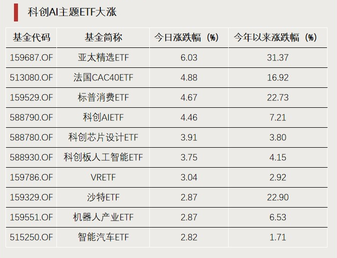 科创AI主题ETF涨幅居前