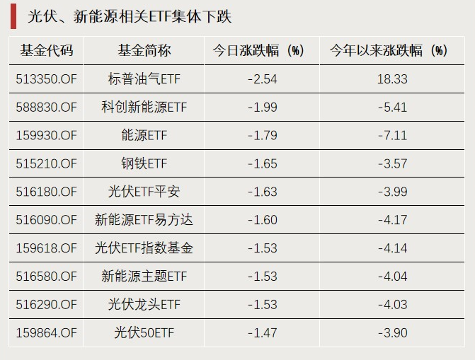 光伏、新能源相关ETF跌幅居前