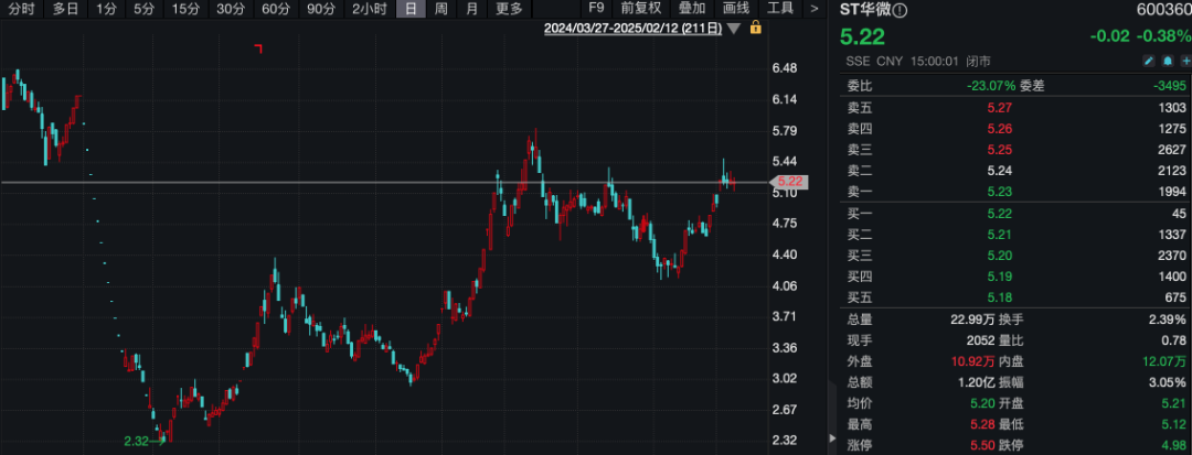 2024年前三季度,ST华微实现收入15.79亿元,归母净利润1.02亿元。其最新市值约为50亿元。