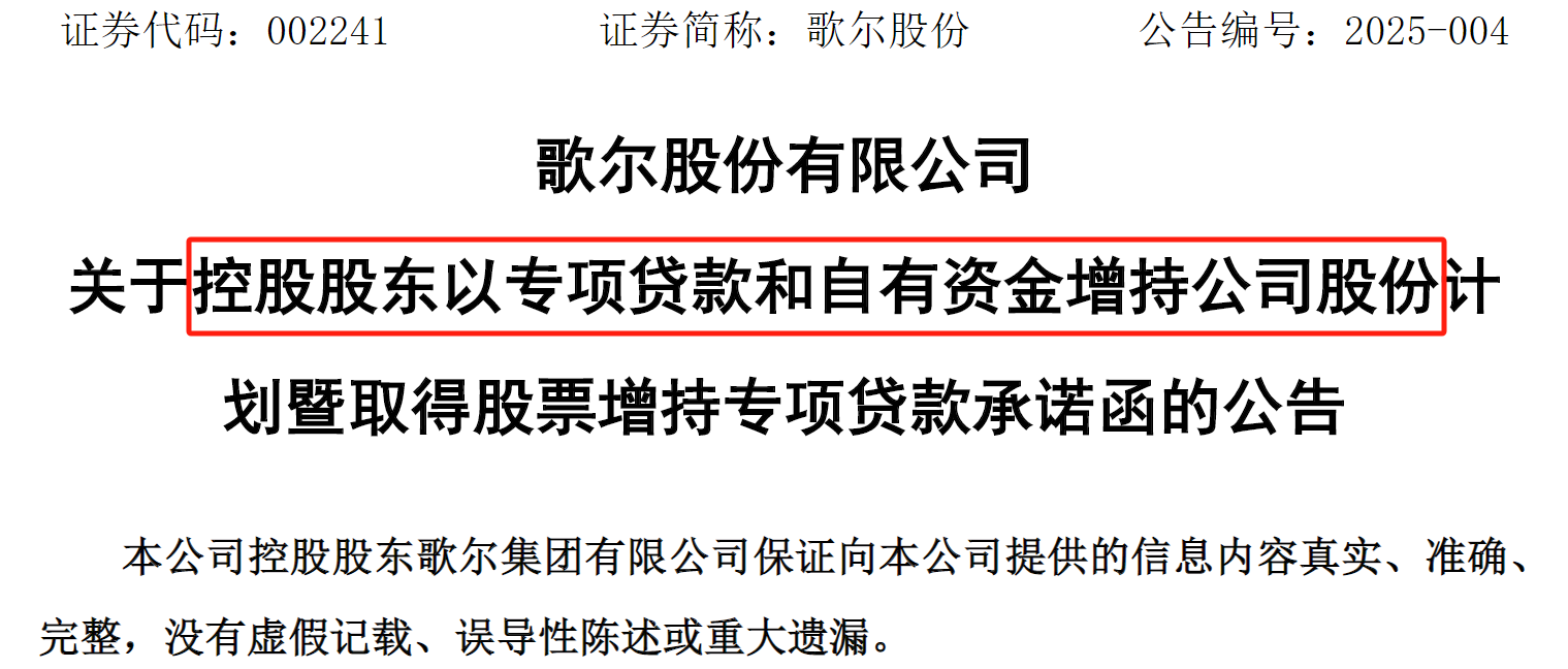 同时,歌尔集团已取得兴业银行潍坊分行提供的不超过人民币9亿元的专项贷款承诺函,贷款比例不超过增持金额的90%,期限为不超过三年。