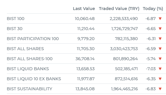 周三开盘后,土耳其主要金融市场均出现大幅下跌。
