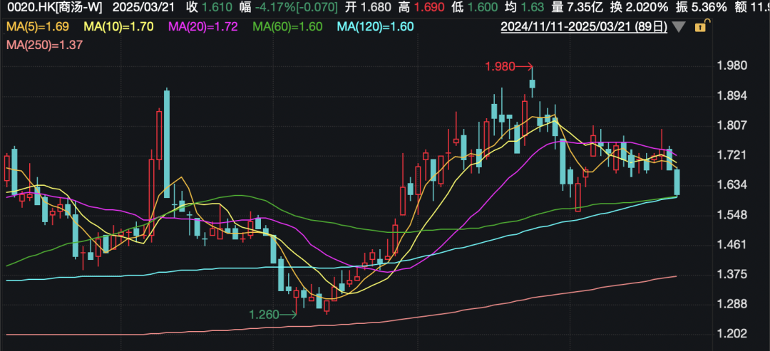 3月21日,商汤股价收跌超4%,目前总市值近600亿港元。