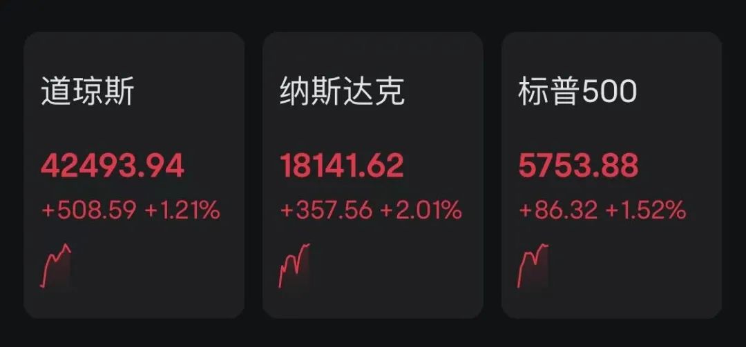 截至发稿,美股三大指数涨幅均超过1%,纳指更是涨逾2%。