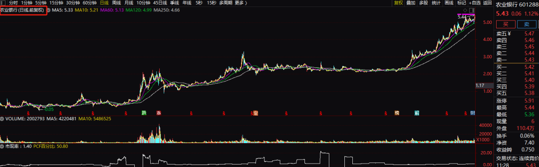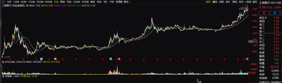 银行板块走势强劲,四大行盘中复权价创历史新高。