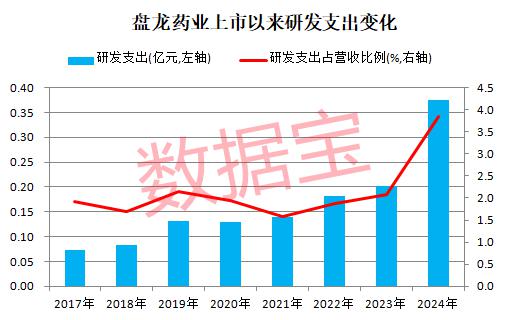 2024年,盘龙药业(002864)在科研创新上按下“加速键”,全年研发支出0.38亿元,创上市以来新高。与此同时,公司研发支出占营收比例达到3.85%,同样创上市以来新高。报告期内,公司将实验室变成创新“主战场”,在中药(562390)新药研发、化药研发、中药(562390)配方颗粒、医疗机构制剂开发、大健康产品开发上取得新突破,重点创新科研项目高质量推进。